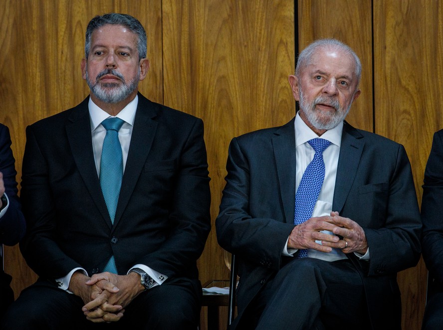 Presidente da Câmara dos Deputados,Arthur Lira e o Presidente Lula no Palácio do Planalto — Foto: Brenno Carvalho / Agência O Globo