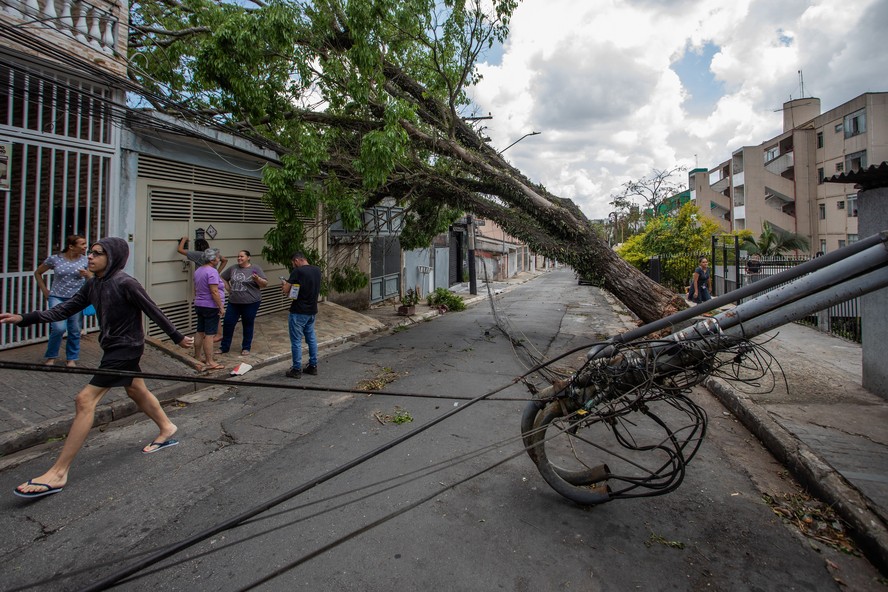 Árvore tomba sobre poste e fiação após temporal em São Paulo — Foto: Edilson Dantas/12.10.2024