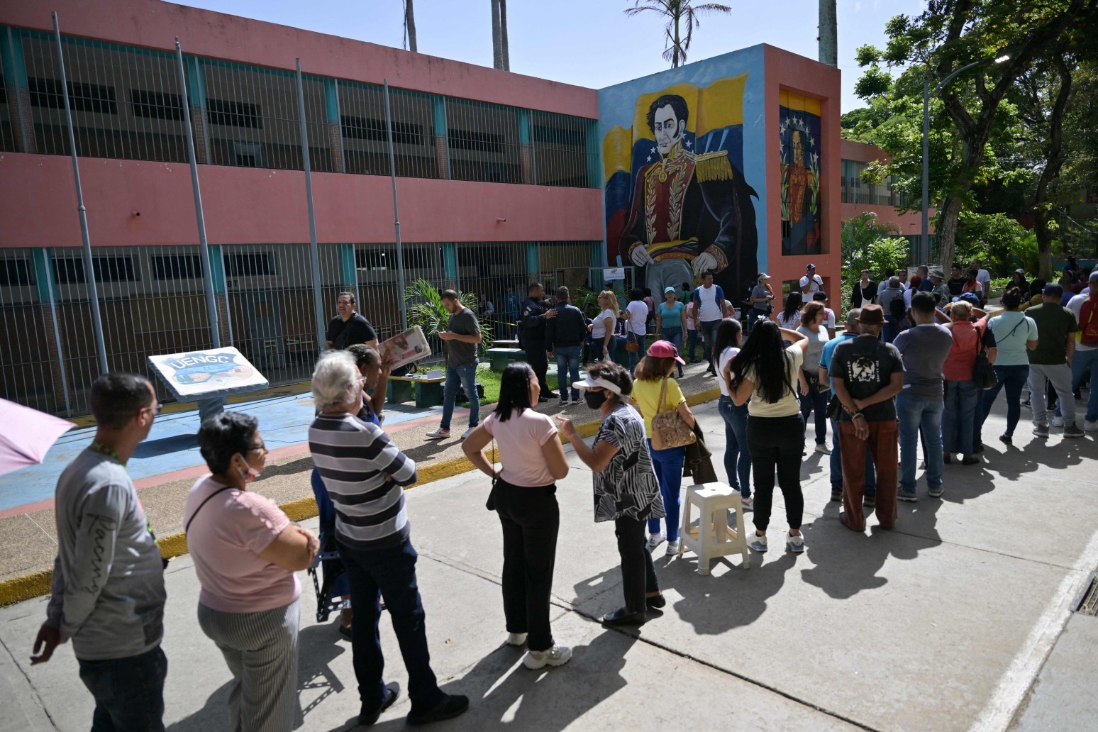 Pessoas fazem fila em uma seção eleitoral em Caracas durante a eleição presidencial venezuelana em 28 de julho de 2024. — Foto: Juan BARRETO / AFP