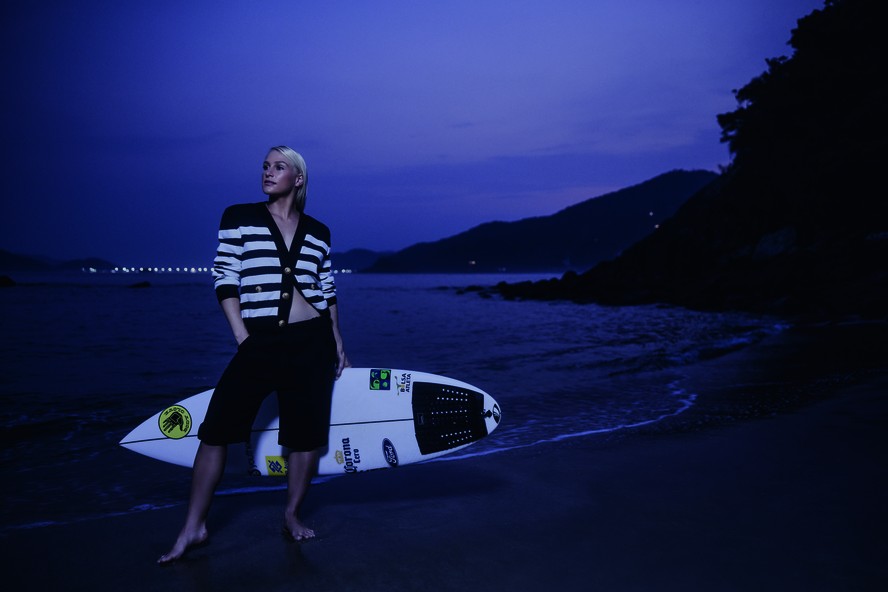 Foi com a confiança de quem subiu numa prancha pela primeira vez aos 2 anos que Tatiana Weston-Webb estreou no circuito mundial de surfe feminino,em 2015. De onda em onda,em uma década de trajetória,conquistou 22 troféus e o terceiro lugar no ranking da World Surf League (WSL) — a elite do esporte. Este ano,nos Jogos Olímpicos de Paris,tornou-se a primeira mulher brasileira a ganhar uma medalha olímpica na modalidade. “Sempre foi um sonho participar de uma Olimpíada. Lembro de assistir pela TV quando criança junto com a minha mãe. Fiquei muito feliz de ter conseguido chegar tão longe”,diz a surfista de 28 anos,que levou a medalha de prata após disputar a bateria final com a americana Caroline Marks. Agora,curte merecidas férias até janeiro do ano que vem,mês de início do calendário das disputas da WSL. Antes de embarcar para a Flórida,onde moram seus pais,Tatiana passou pelo Brasil para cumprir agenda de compromissos com patrocinadores e fez as fotos deste ensaio no Guarujá,cidade do litoral paulista onde nasceu seu marido,o também surfista profissional Jesse Mendes,e onde o casal mantém uma casa.