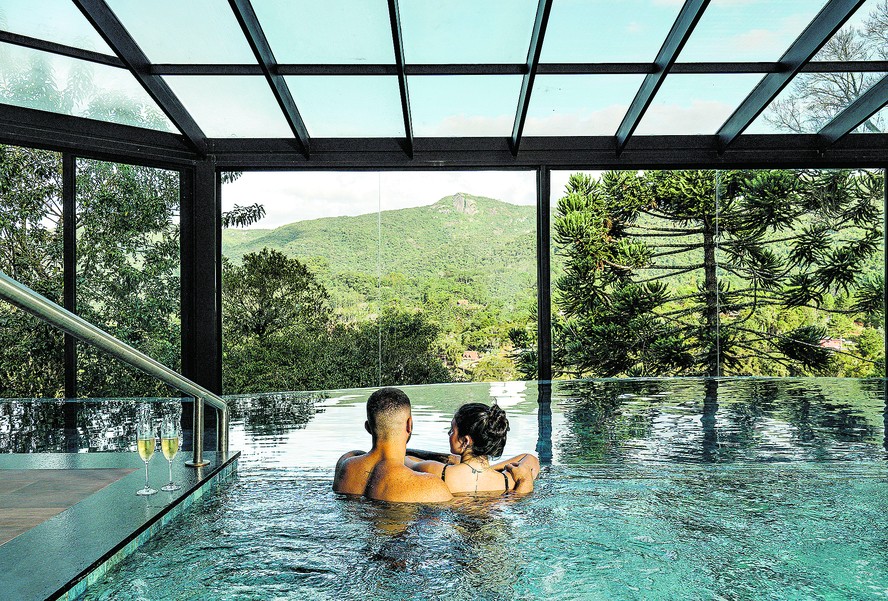 Piscinas aquecidas com vista das montanhas do Mirante da Colyna,hotel e spa em Monte Verde — Foto: Divulgação/Mirante da Colyna