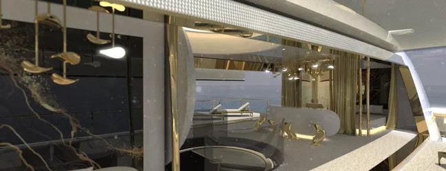 Modelo que ainda não saiu do papel é um luxuoso superiate submersível avaliado em cerca de R$ 10 bilhões — Foto: Divulgação/Migaloo