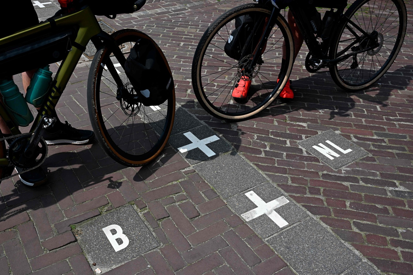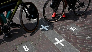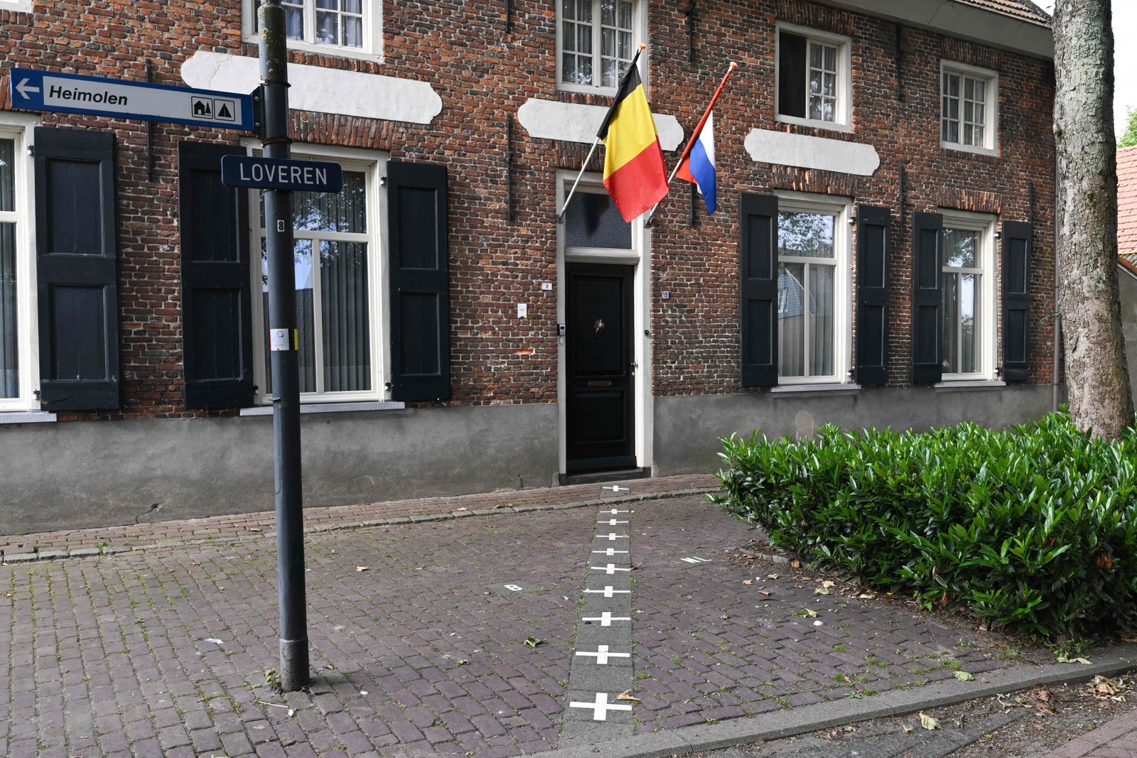 Bandeiras e chão marcados na cidade que faz fronteira entre a Bélgica e a Holanda — Foto: AFP