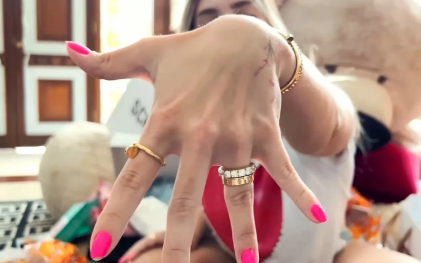 Virginia recebeu anel milionário com 14 diamantes puros de Zé Felipe — Foto: Reprodução