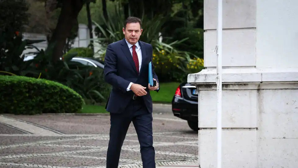 Luís Montenegro é acompanhado na cerimónia de assinatura do contrato por Maria da Graça Carvalho,ministra do Ambiente e Energia,e por Manuel Castro Almeida,ministro-Adjunto e da Coesão Territorial.