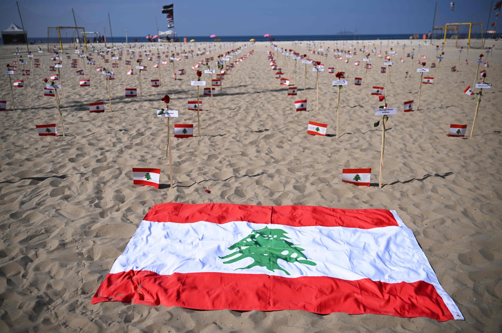 Rio de Paz presta homenagem a vítimas de explosão no Líbano,há três anos — Foto: Carl de Souza / AFP