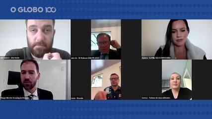 Juiz (à esq.) adverte advogado após réu se esconder durante audiência — Foto: Reprodução