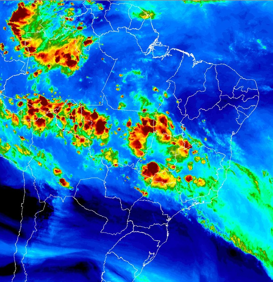 No Centro-Sul do país,12 estados serão atingidos por chuvas intensas ou tempestades neste sábado,segundo o Inmet: Espírito Santo,Goiás,Mato Grosso,Mato Grosso do Sul,Minas Gerais,Rio de Janeiro,Rondônia,Rio Grande do Sul e São Paulo,além de trechos no norte do Paraná e no sul de Tocantins.