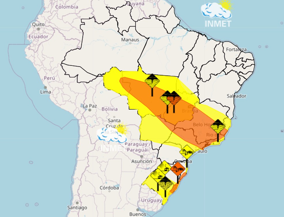 Alertas para este sábado — Foto: Reprodução/Inmet
