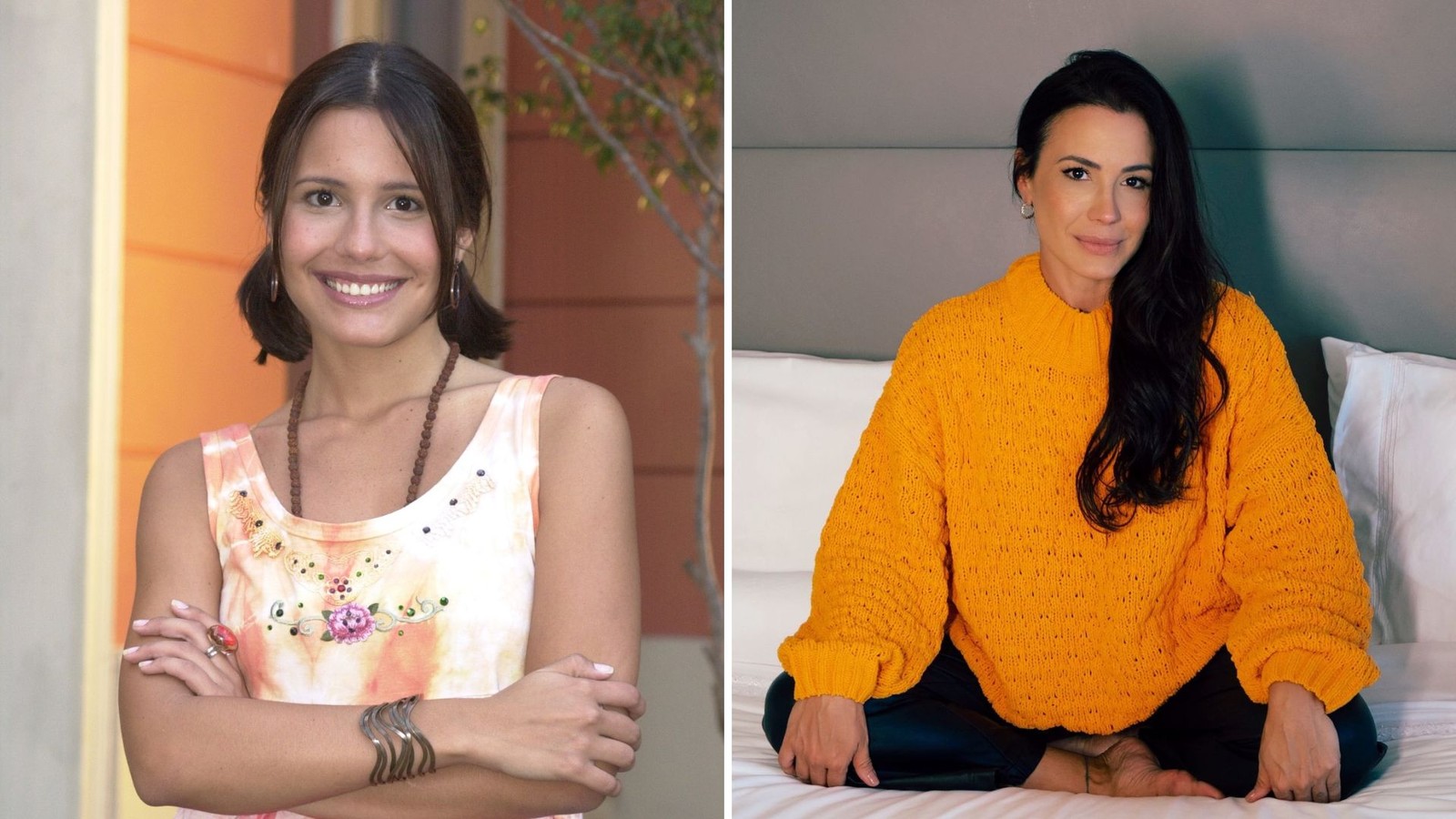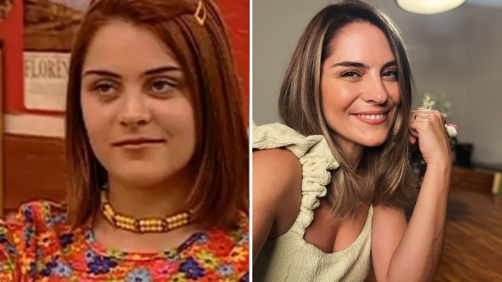 Bruna Thedy viveu a personagem Ritinha na sua estreia na TV,no seriado 'Sandy & Junior'. Além da carreira de atriz,ela investiu na profissão de apresentadora e também é celebrante de casamentos. — Foto: Reprodução/Globo e Reprodução/Instagram