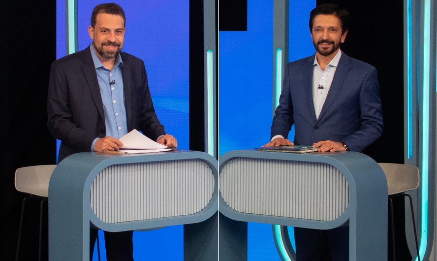 Guilherme Boulos (PSOL) e Ricardo Nunes (MDB) no debate da TV Globo — Foto: Edilson Dantas