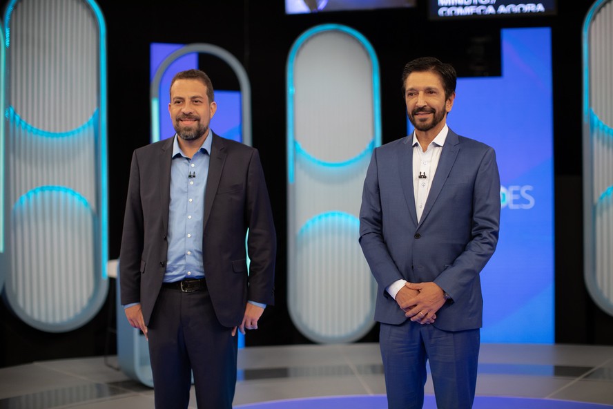 Guilherme Boulos (PSOL) e Ricardo Nunes (MDB) durante debate da TV Globo — Foto: Edilson Dantas/Agência O Globo