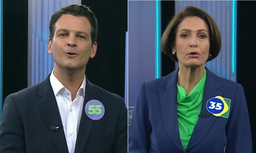 Eduardo Pimentel (PSD) e Cristina Graeml (PMB) em debate na TV Globo — Foto: Reprodução