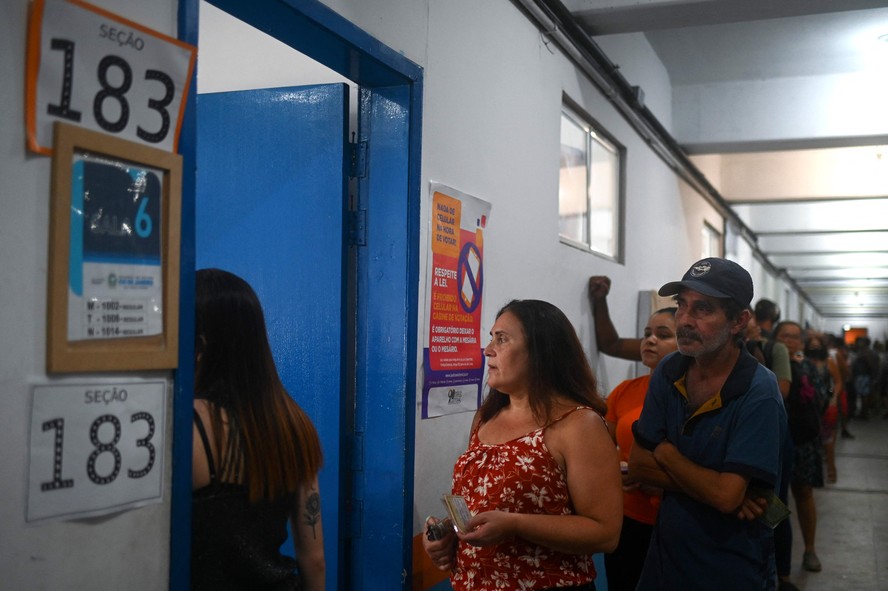 Eleitores aguardam na fila de seção de votação perto da Rocinha. — Foto: André Borges / AFP