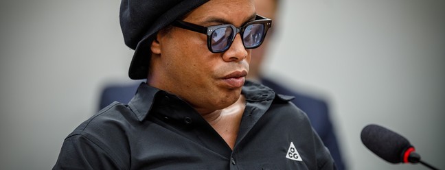 O ex-jogador Ronaldinho Gaúcho,durante depoimento à CPI das Pirâmides — Foto: Brenno Carvalho / Agência O Globo