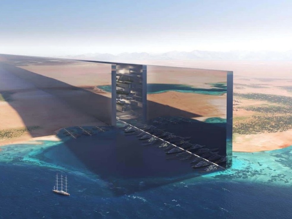 O megaproyecto Neom,impulsionado pelo príncipe herdeiro e dirigente de fato do reino,Mohamed bin Salman,tornou-se famoso especialmente por seu edifício emblemático "The Line",com duas fachadas espelhadas que se estenderão por 170 km no deserto desde o golfo de Áqaba.