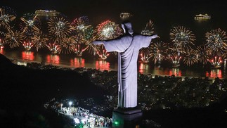 Queima de fogos em Copacabana,vista do Cristo Redentor — Foto: Fernando Maia / Prefeitura do Rio