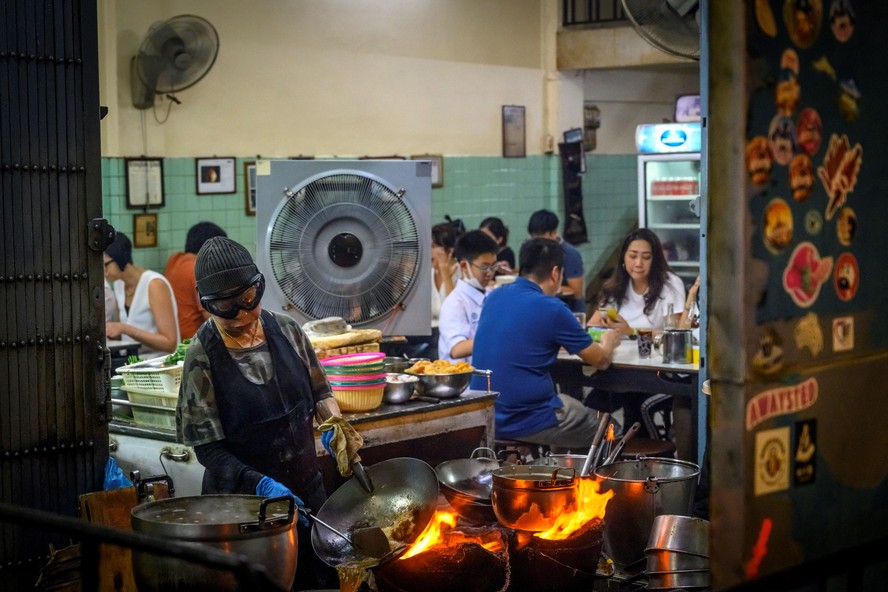Embora classificados como comida de rua,os pratos da cozinha aberta do restaurante homônimo de Jay Fai,na antiga Bangcoc,não são baratos — a omelete de caranguejo exclusiva custa cerca de US$ 40 (R$ 227).