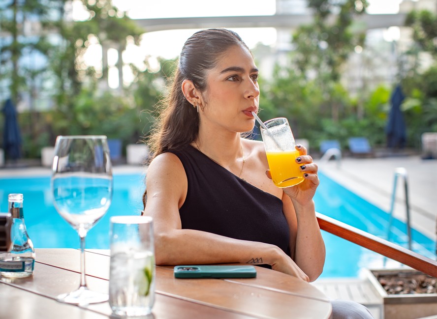 Giulia Wegbrayt,de 29 anos,evita bebidas alcoólicas. — Foto: Edilson Dantas / O Globo