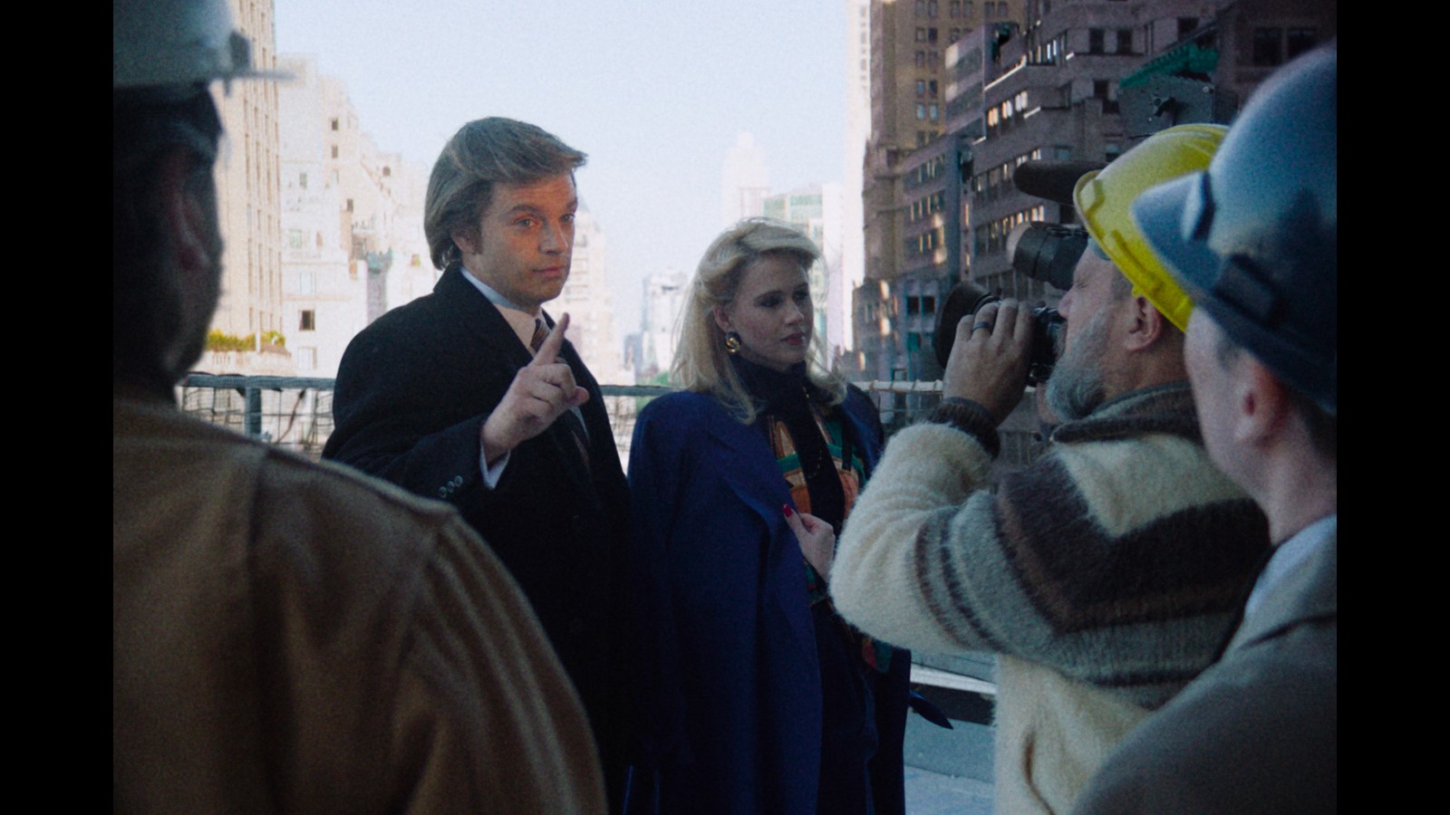O ator Sebastian Stan (esq.) nos bastidores de 'O aprendiz' — Foto: Pief Weyman/ Divulgação