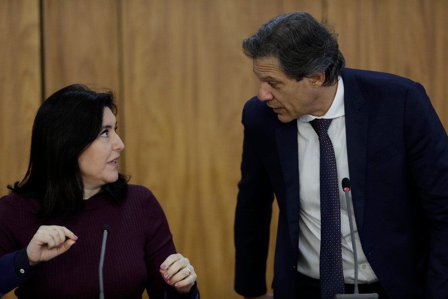Os ministros Fernando Haddad e Simone Tebet — Foto: Cristiano Mariz / Agência O Globo