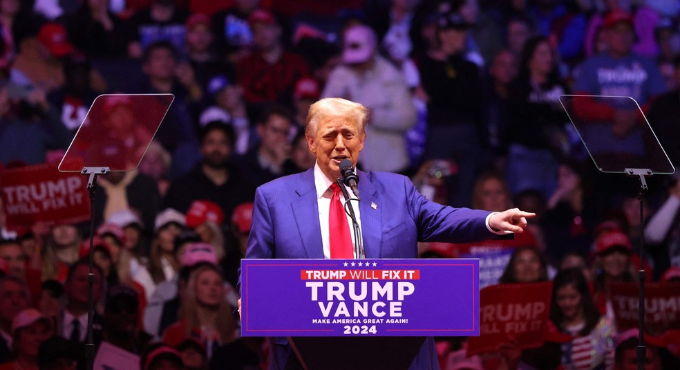 Ex-presidente dos EUA e candidato à Presidência Donald Trump faz discurso em Nova York — Foto: Michael M. Santiago/Getty Images/AFP