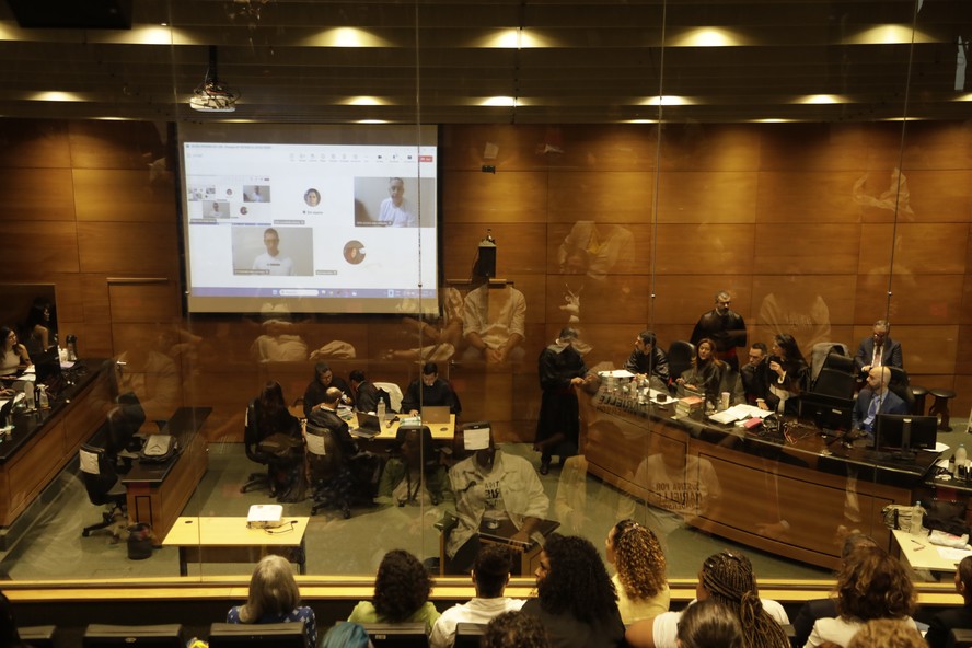 Caso Marielle e Anderson: julgamento dos réus confessos Ronnie Lessa e Élcio de Queiroz,que participaram remotamente,de dentro dos presídios — Foto: Gabriel de Paiva