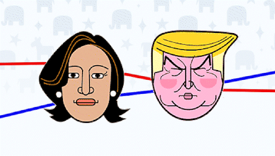 Ilustração com a candidata democrata,Kamala Harris,e republicano,Donald Trump,à Presidência dos EUA — Foto: Editoria de Arte