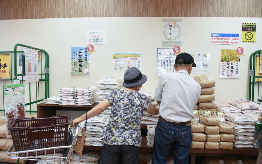 Moradores de Niigata compram arroz em mercado da prefeitura local: variedade Koshihikari é a mais consumida no Japão,mas não tolera altas temperaturas — Foto: Noriko Hayashi/The New York Times