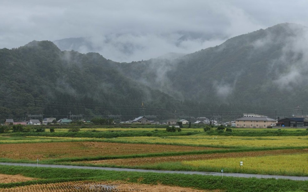 Campos de arroz na região de Uonuma,onde é produzido um dos melhores arrozes Koshihikari do Japão,no sul da província de Niigata — Foto: Noriko Hayashi/The New York Times