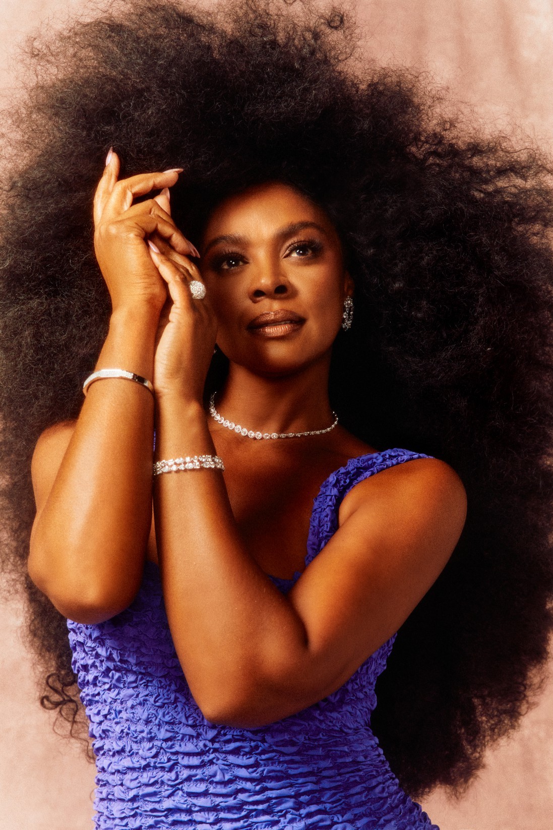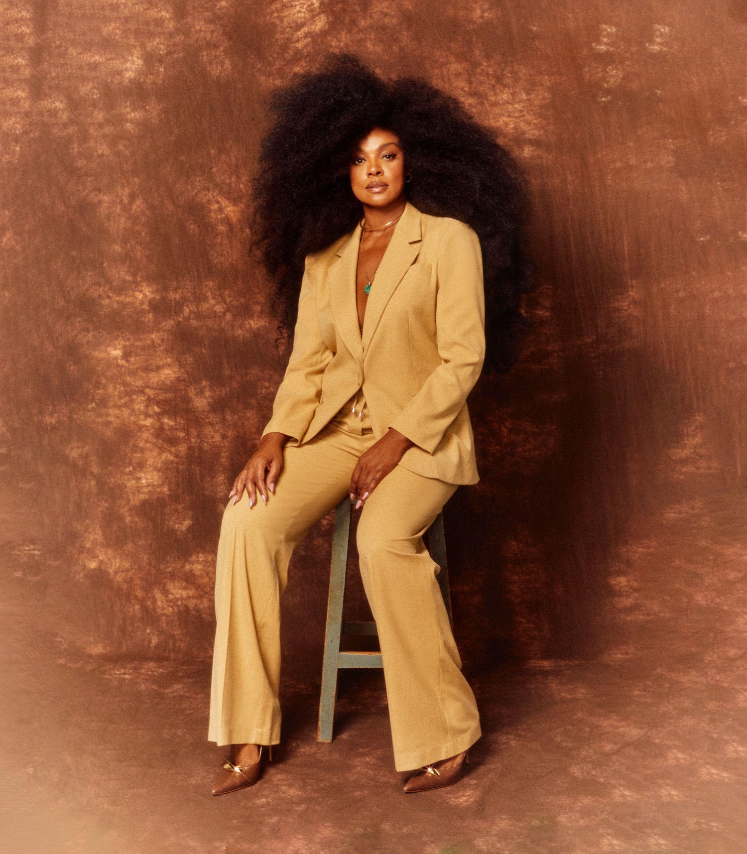 Cris Vianna usa blazer e calça Carol Bassi,choker e argolas CF Atelier,colar longo Léia Sgro e sapatos Cecconello — Foto: Thiago Bruno