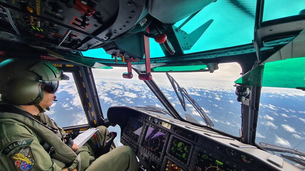 Missão de busca e resgate acontece na região da Amazônia próximo à fronteira com o Peru — Foto: Comando Militar da Amazônia / AFP