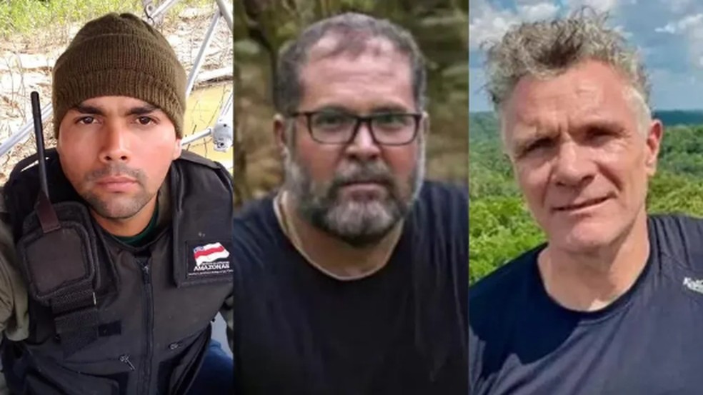Da esquerda para a direita: Maxciel Pereira dos Santos,Bruno Pereira e Dom Phillips — Foto: Montagem/Reprodução