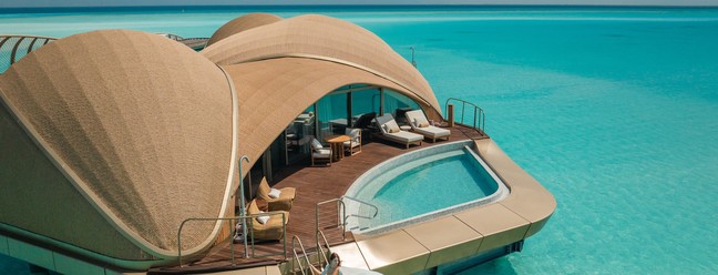 Todos os bangalôs e villas do resort Nujuma,na Arábia Saudita,têm piscina privativa — Foto: Reprodução
