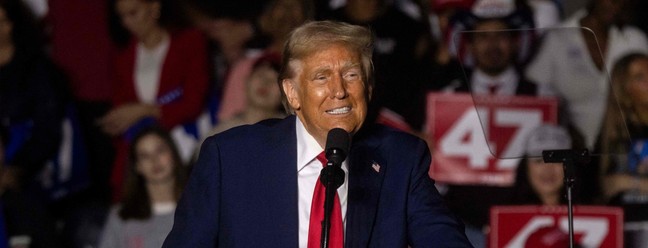 O ex-presidente e candidato republicano Donald Trump sobe ao palco durante um comício de campanha na Georgia Tech em Atlanta,em 28 de outubro de 2024 — Foto: Dustin Chambers/The New York Times