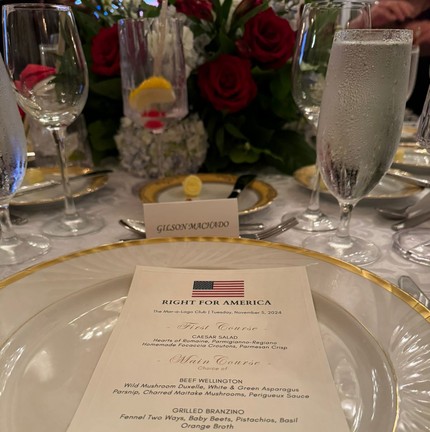 O menu do jantar de Donald Trump com convidados em resort na Flórida — Foto: Gilson Machado