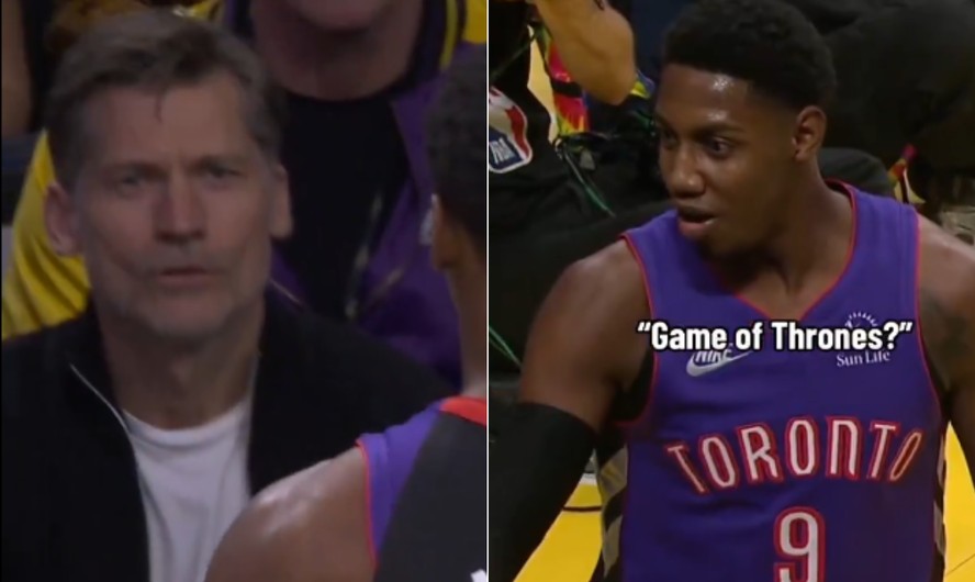 Tratava-se de Nikolaj Coster Waldau,que interpretou Jaime Lannister,na séria Game of Thrones. O jogador da franquia de Toronto não conseguiu esconder a surpresa ao ver o ator do lado de fora das quadras.