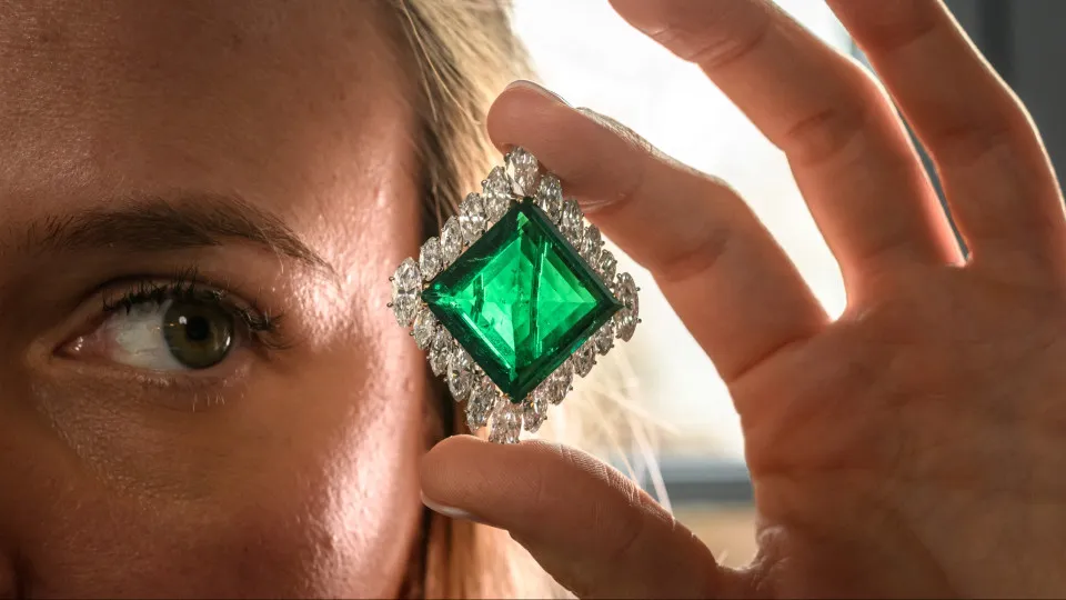 A esmeralda "é extremamente fina e plana,o que a faz parecer uma pedra de 50 quilates",frisou Fawcett.