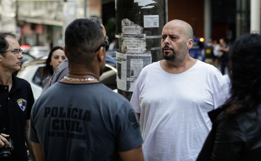 Reprodução simulada da morte de Anic de Almeida Peixoto Herdy,em Petrópolis. O réu confesso Lourival Fatica participou da simulação feita pela Polícia Civil. Inicialmente os agentes estiveram no centro,onde Lourival encontrou Anic . — Foto: Gabriel de Paiva/ Agência O Globo