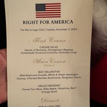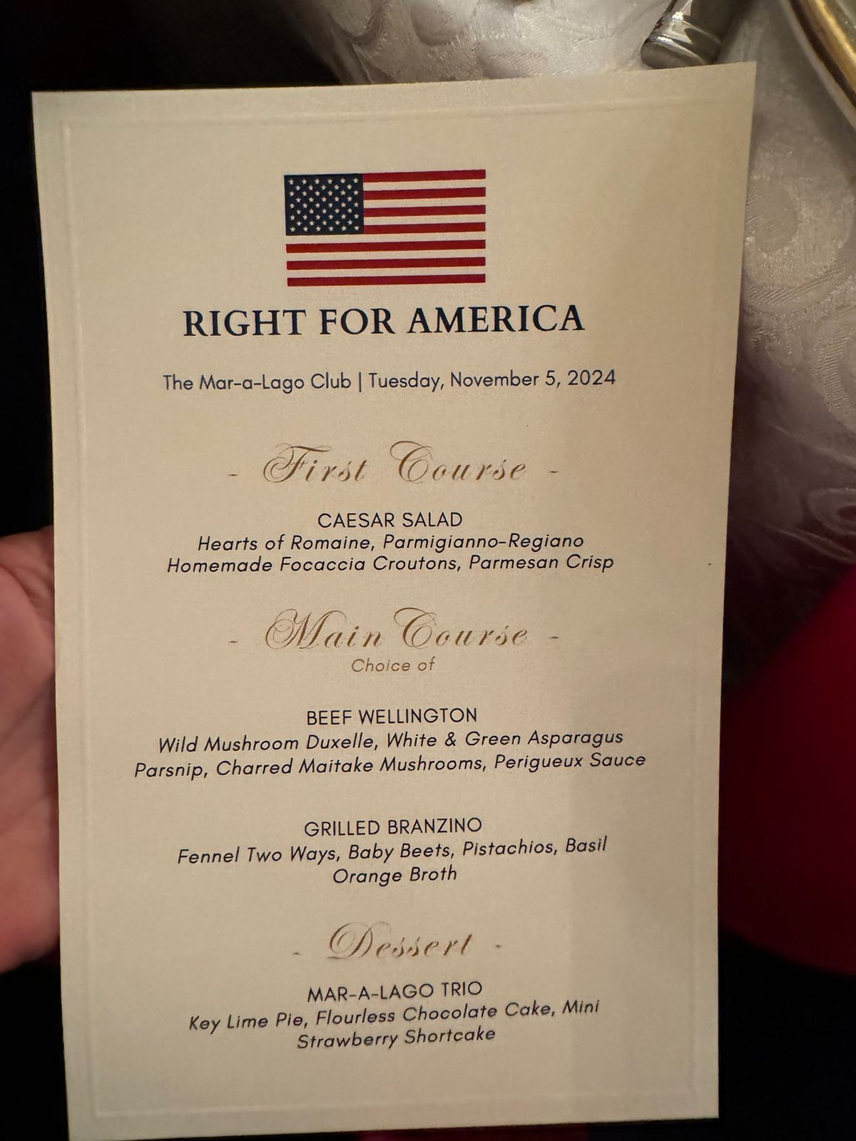 O menu do jantar de Donald Trump com convidados em resort na Flórida — Foto: Gilson Machado