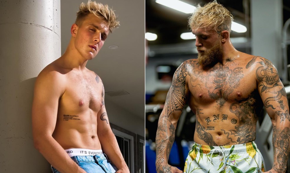 Jake Paul passou por uma transformação corporal para virar boxeador profissional — Foto: Reprodução/Redes Sociais