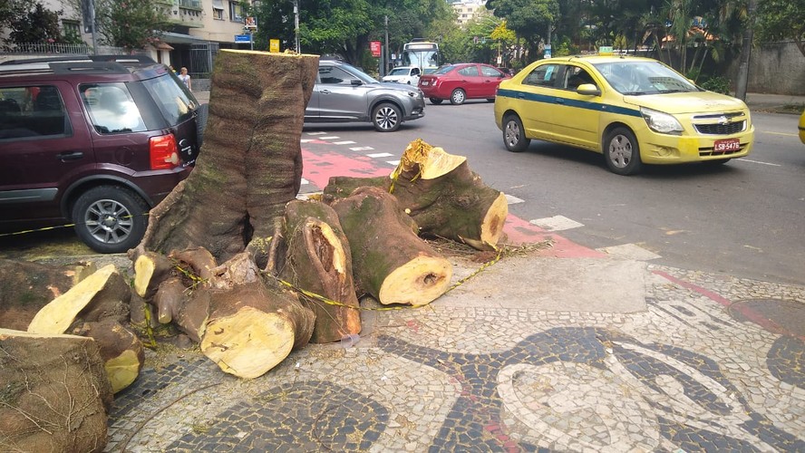 Árvore cortada em rua do Rio — Foto: Liane Reis