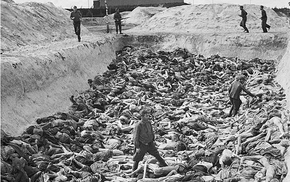 Uma vala repleta de pessoas mortas no campo de concentração de Bergen-belsen,em 1945 — Foto: Reprodução/Imperial War Museum