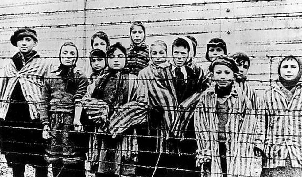 Prisioneiros de campo de concentração pouco antes da libertação — Foto: Reprodução