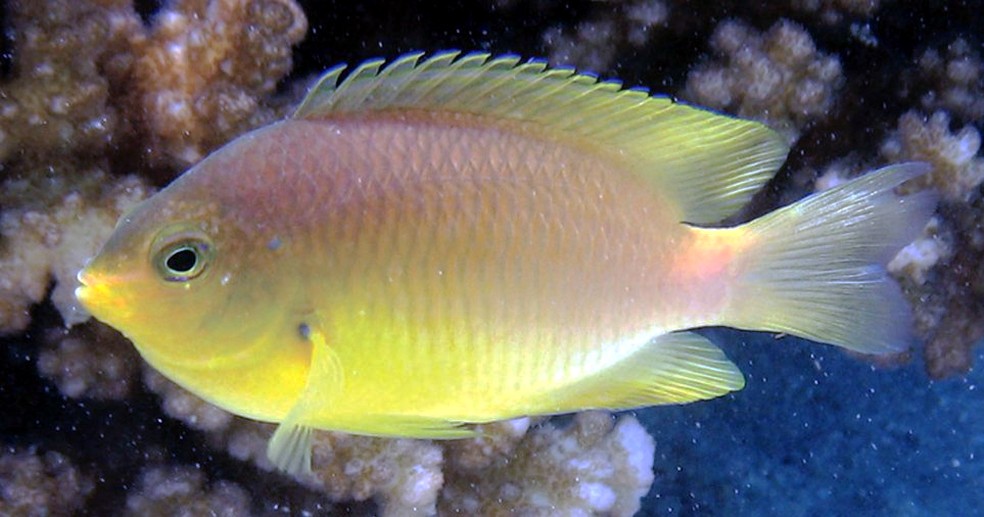 O peixe-donzela é uma espécie de água salgada famosa pelas suas cores brilhantes — Foto: Reprodução wikipedia