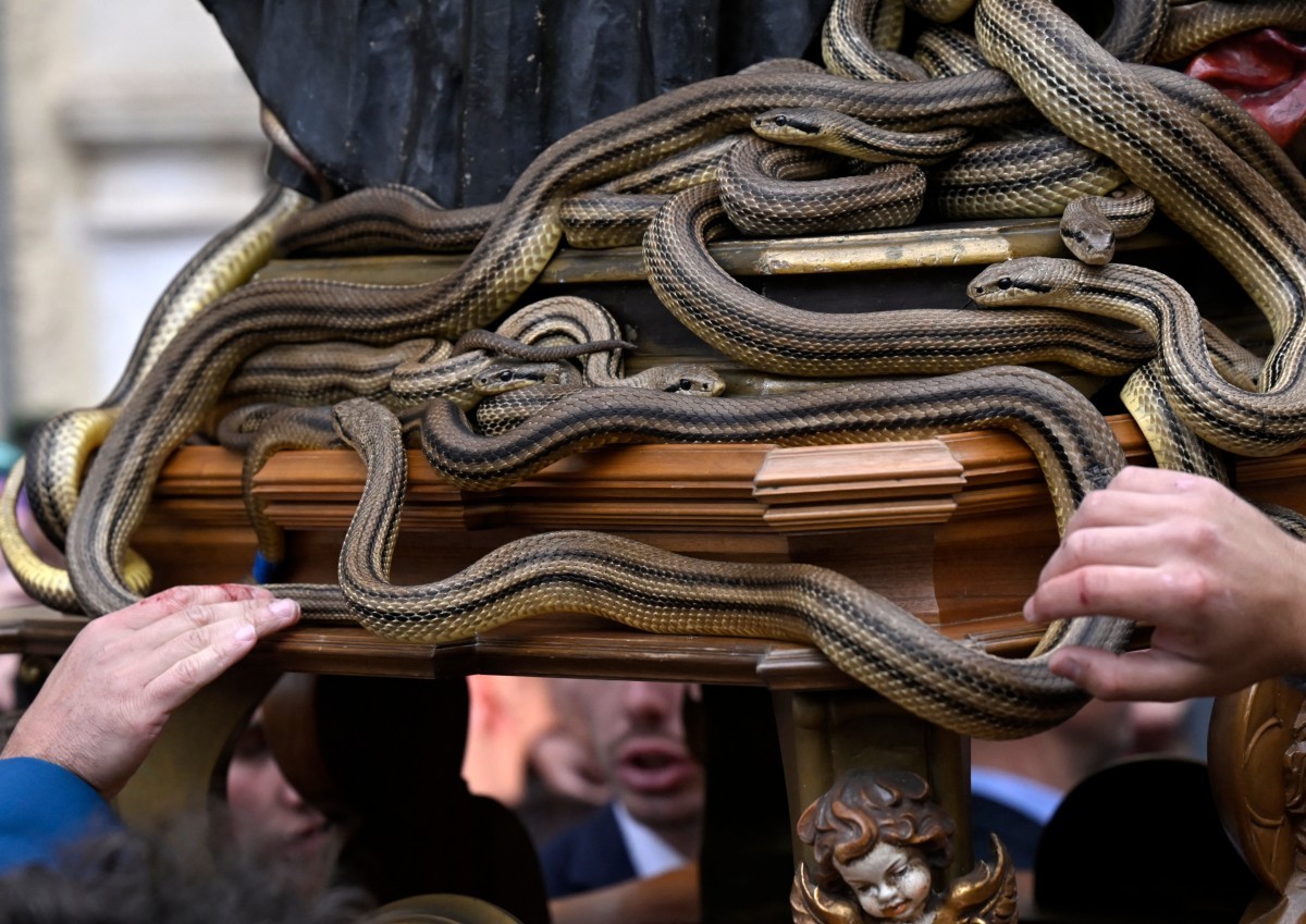 Religiosos usam serpentes em procissão tradicional,na Itália; veja fotos — Foto: TIZIANA FABI/AFP