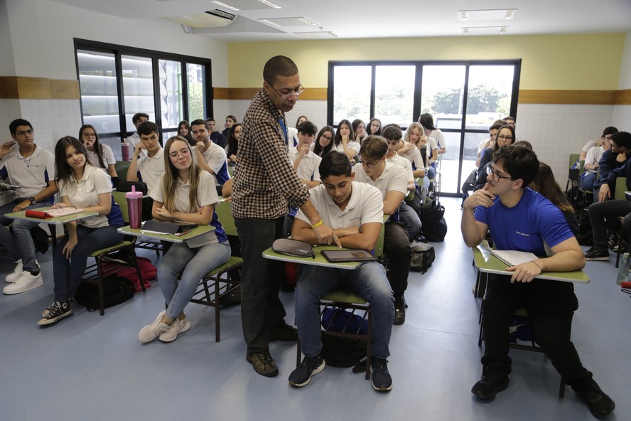 Santo Agostinho. Alunos da 3ª série do ensino médio em aula com o professor Leonardo Nery,de literatura: ano é sobretudo de revisão do conteúdo — Foto: Domingos Peixoto