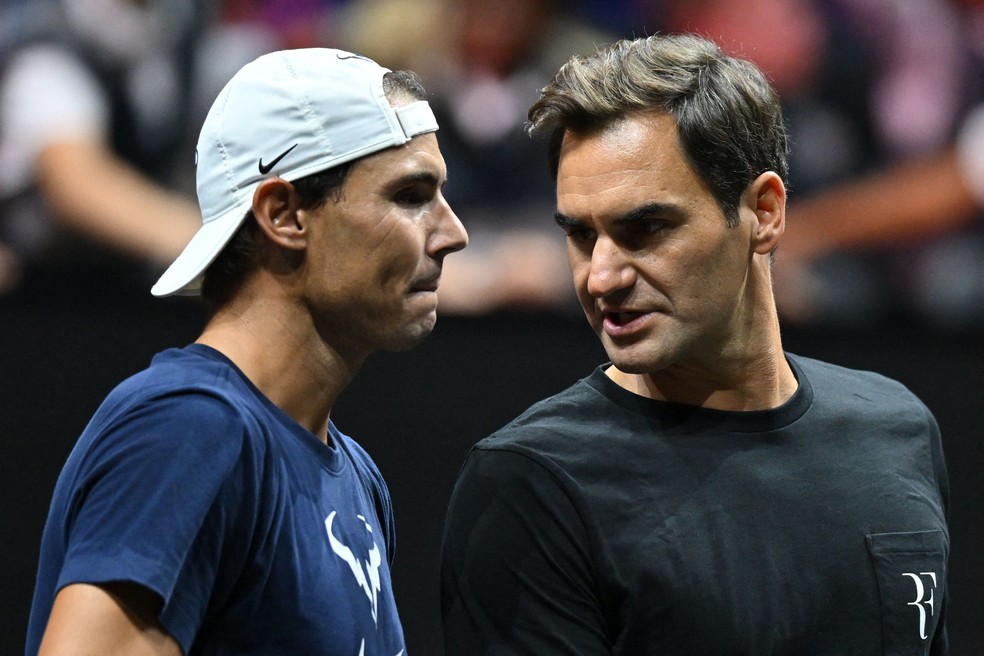 Federer,que se aposentou em 2022,enfrentou Nadal em 14 torneios de Grand Slam. Rivais e amigos,jogaram juntos o último jogo de Federer,na Laver Cup,em Londres,em setembro de 2022.
