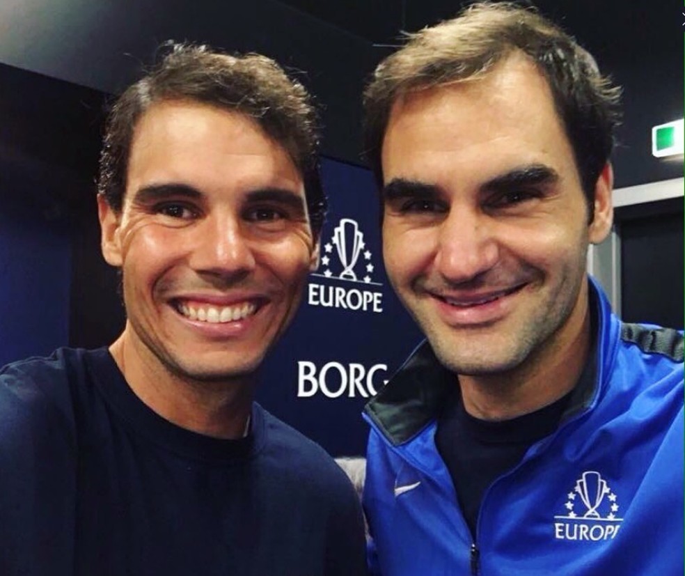 Federer e Nadal: rivais nas quadras; Nadal lamentou aposentadoria de Federer,anunciada na data de hoje. — Foto: Reprodução Twitter