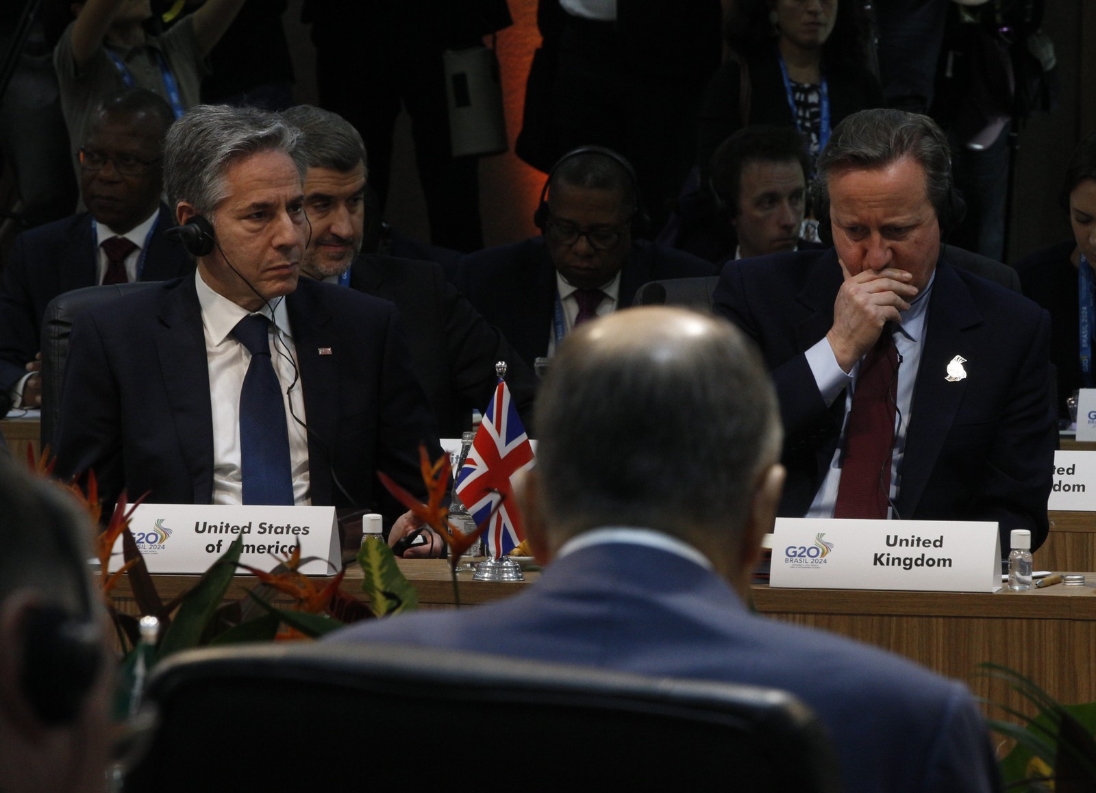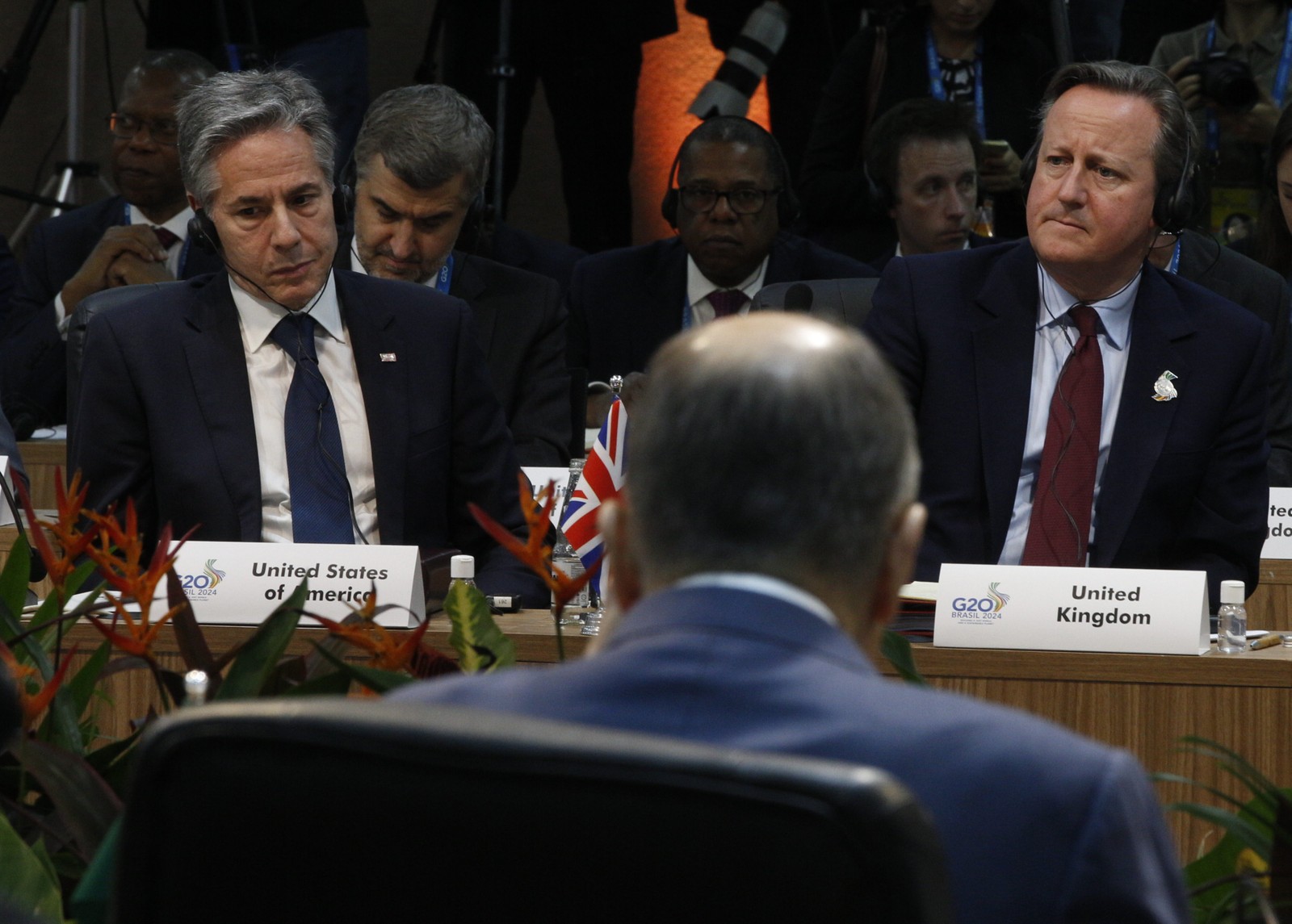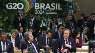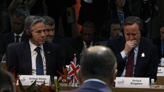 Antony Blinken,secretário de estado dos Estados Unidos e David Cameron,secretário de estado do Reino Unido — Foto: Alexandre Cassiano